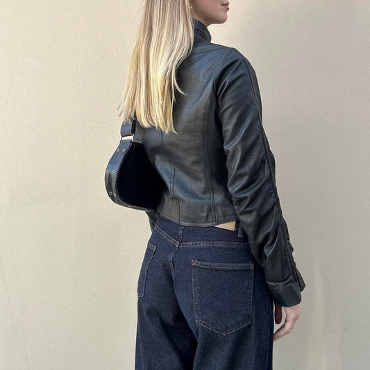 Vintage 00s leather rutched jacket - faulty