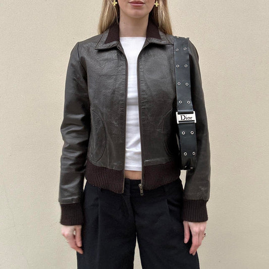 Vintage 00s chocolate brown leather bomber jacket