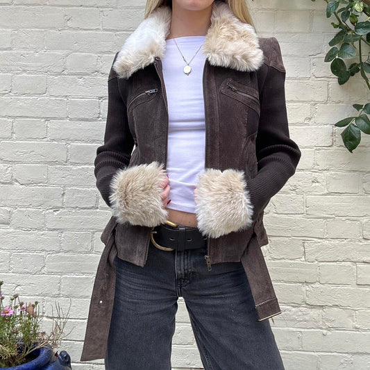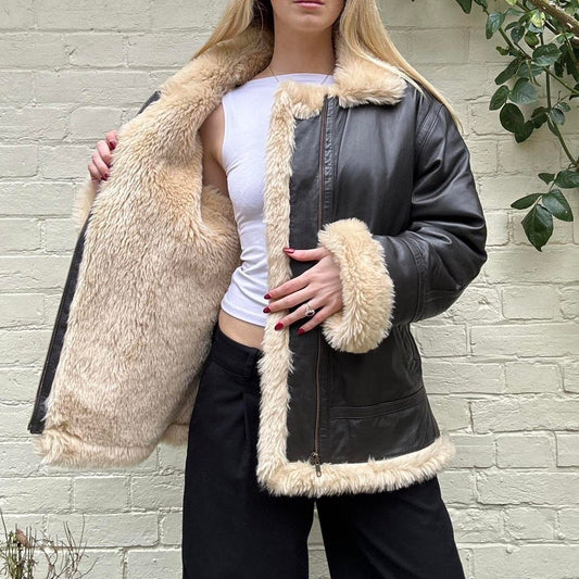 Vintage 00s leather & faux fur jacket