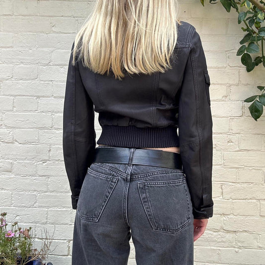 Vintage 00s black leather bomber jacket