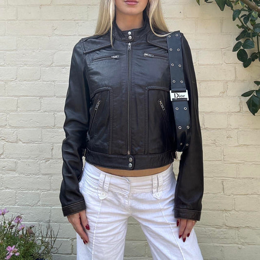 Vintage 00s brown leather biker jacket