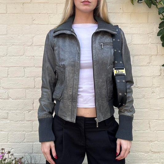 Sold outVintage 00s khaki leather jacket