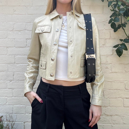 Vintage 00s ivory white leather jacket