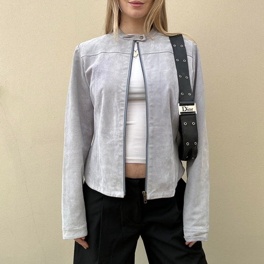 Vintage 00s baby blue suede biker jacket