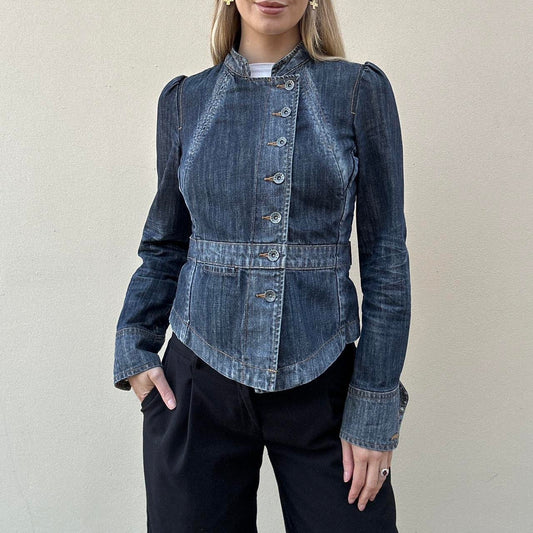 Vintage 00s denim asymmetric button jacket