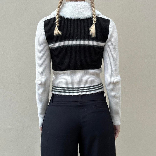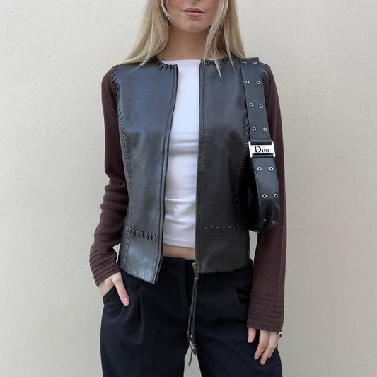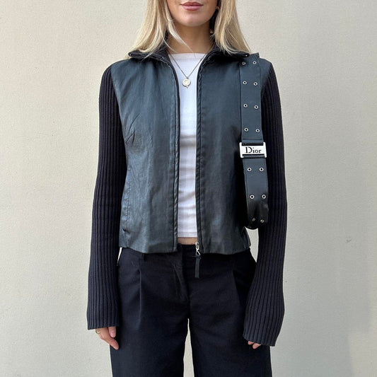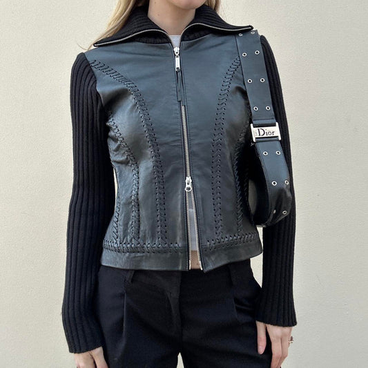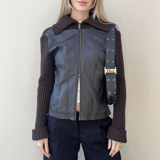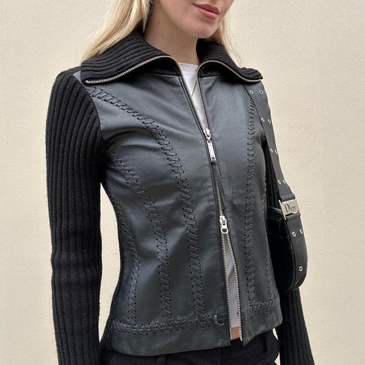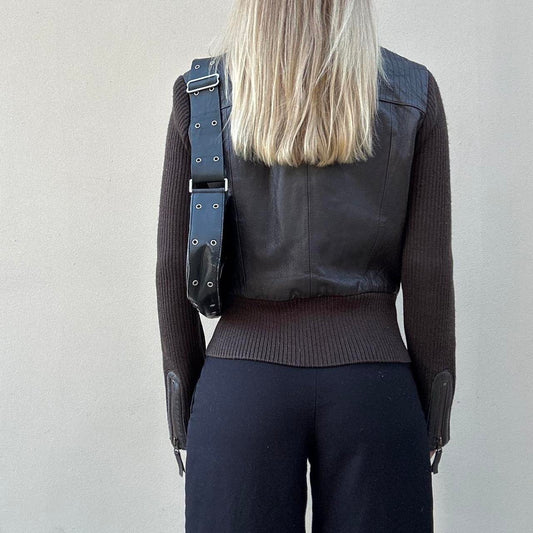 Vintage 00s leather & knit jumper jacket