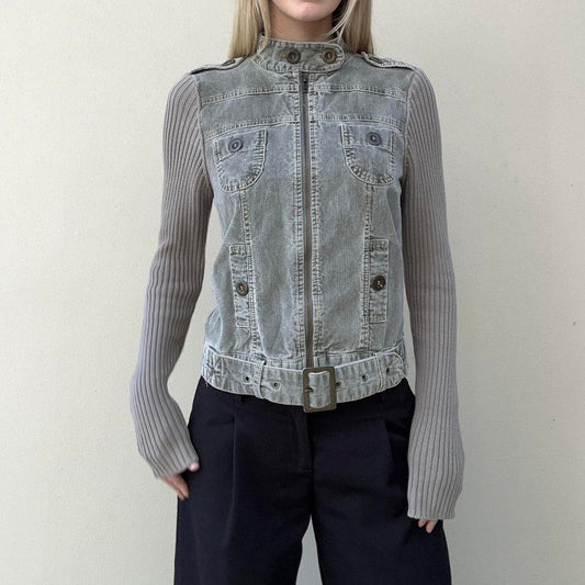 Vintage 00s khaki corduroy & knit jumper jacket