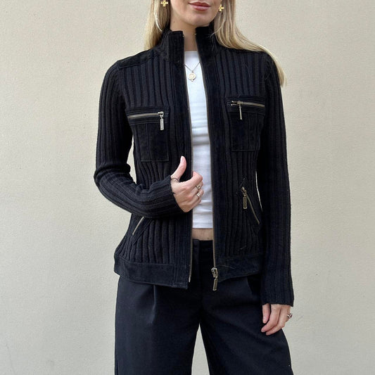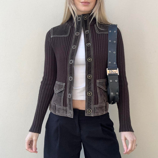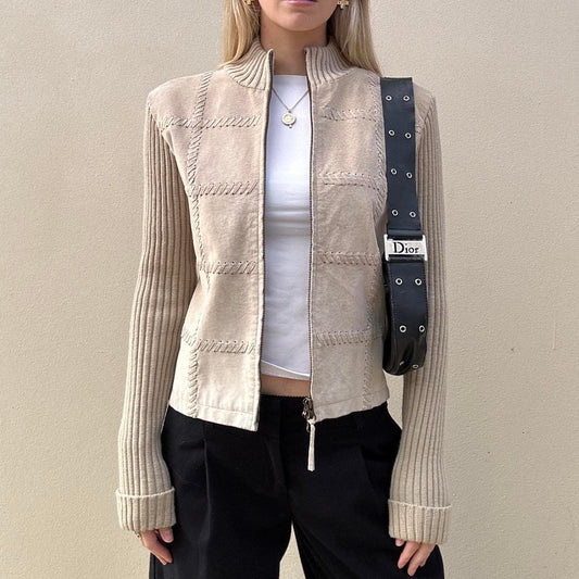 Vintage 00s suede & knit jumper jacket