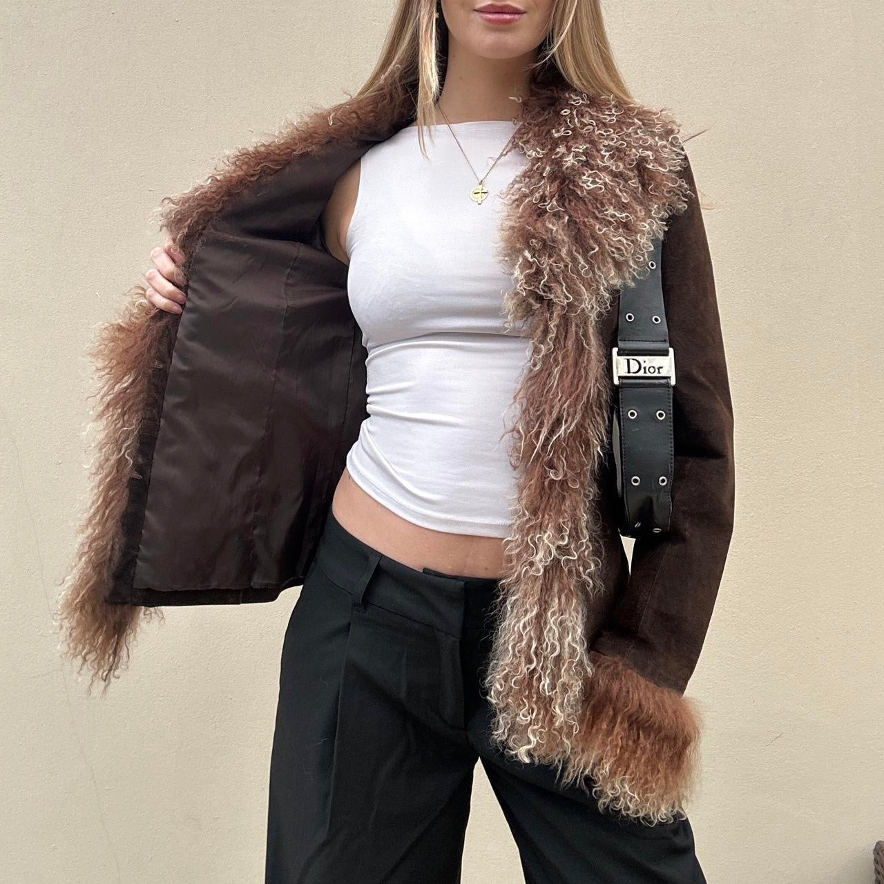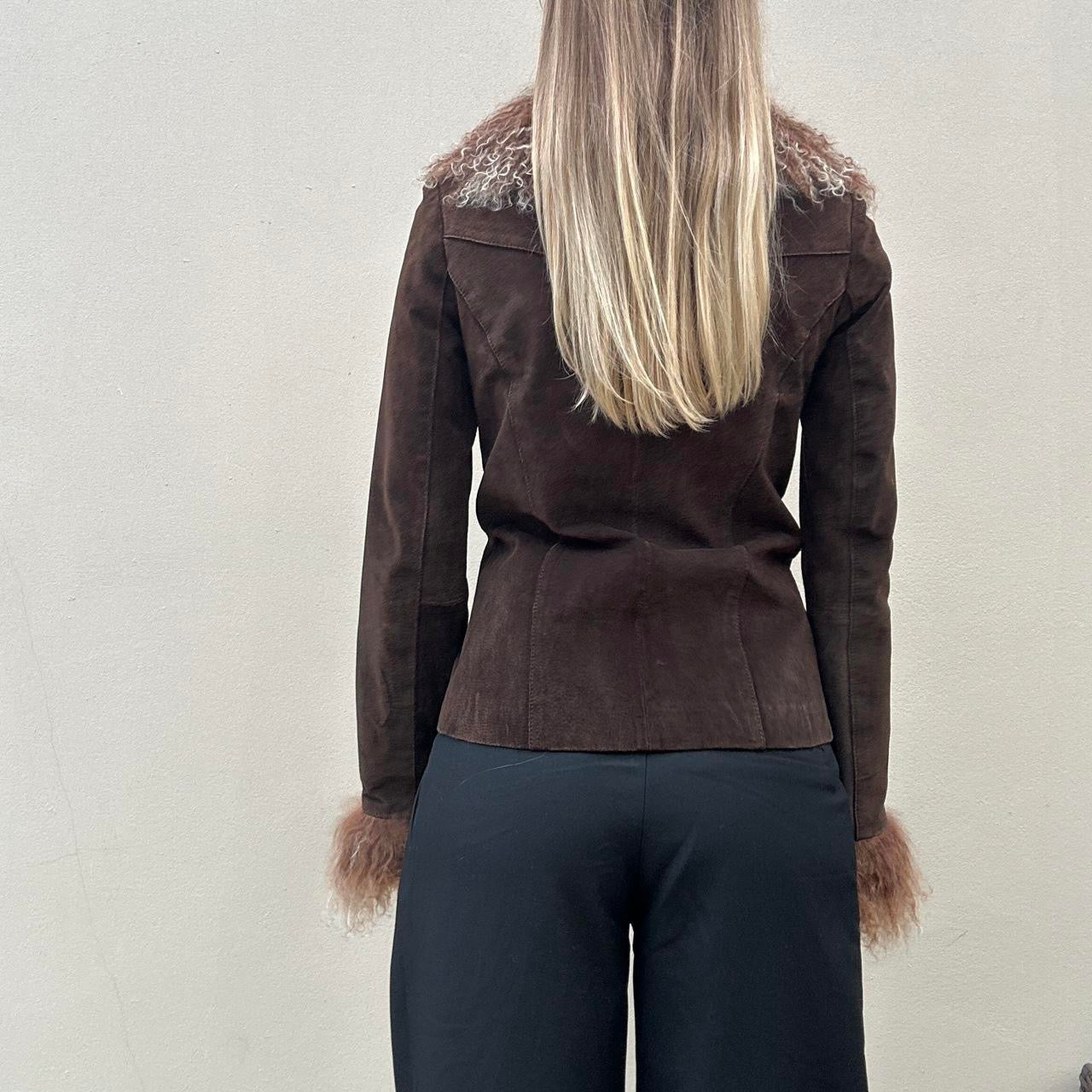 Vintage 00s brown Mongolian afghan jacket - genuine suede - closes with hook and eye - size U.K. 8 - good condition