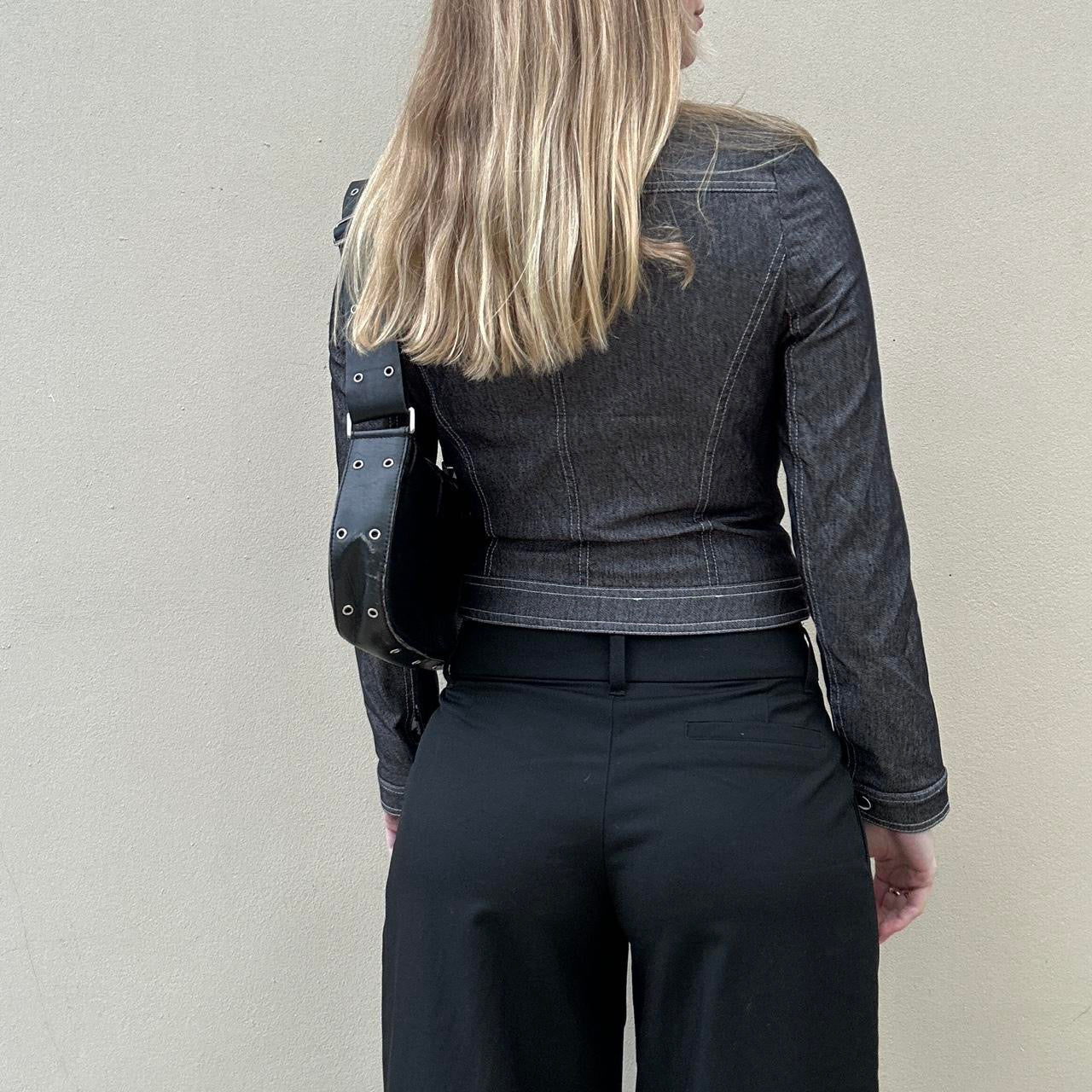 Vintage 00s denim zip jacket - biker style - old school Topshop from 20 years ago - size labelled 10 - more of a size U.K. 8 - in excellent condition