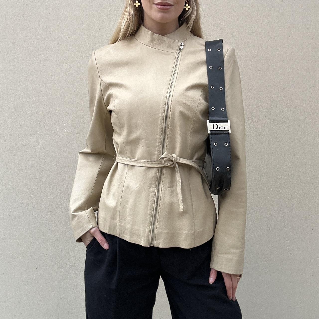 Vintage 00s leather asymmetric jacket - genuine leather - waist tie belt - size 12 - in v good condition