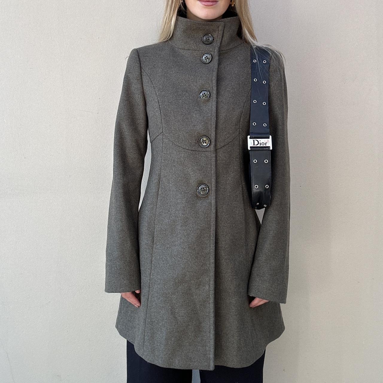 Vintage 00s olive wool coat - chunky buttons - fits like a size 8 - in excellent condition